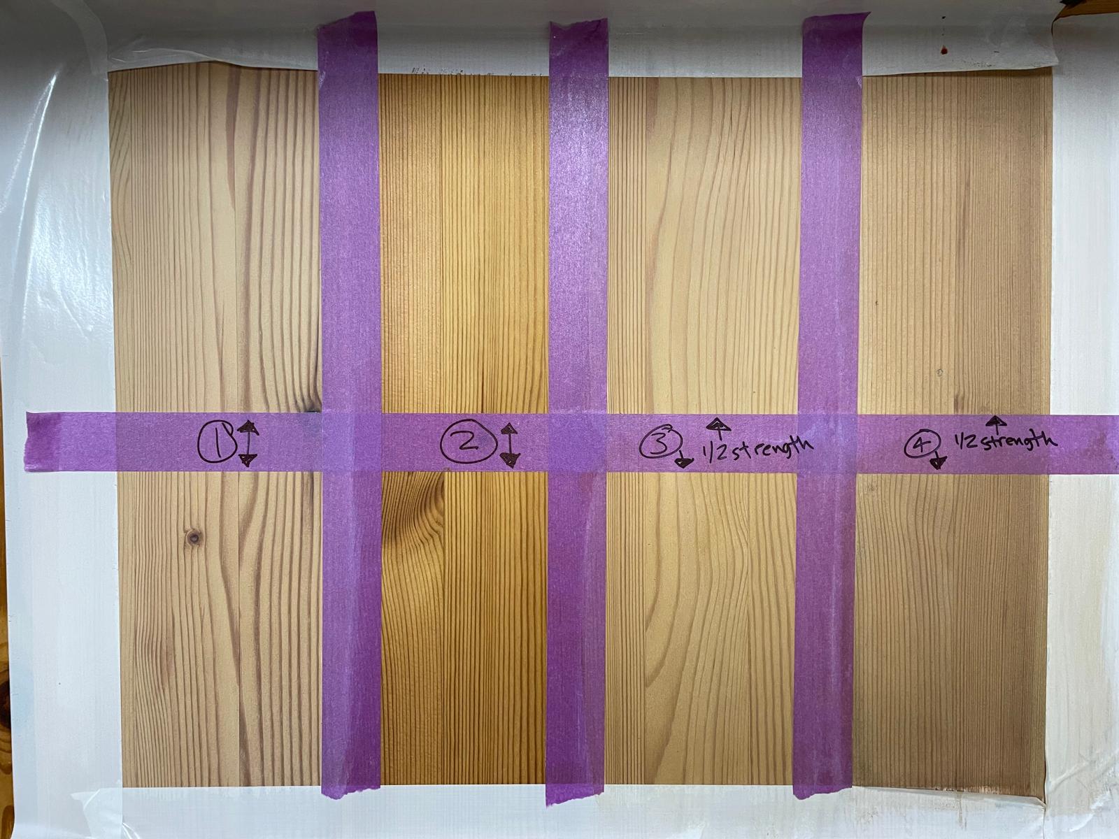 Full disclosure; these samples aren’t water stains on bare wood but instead are stains sitting on a very thin layer of finish (spray lacquer) before going on to have a water pigment stain put on top. If these stains were applied to the bare wood they would usually not look anywhere near as even (or subtle) in my opinion.